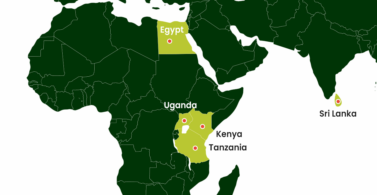 Our farms span across Sri Lanka and the Pan-African regions of Egypt, Tanzania, Kenya, and Uganda, strategically located to produce the finest botanical raw materials for diverse industries.